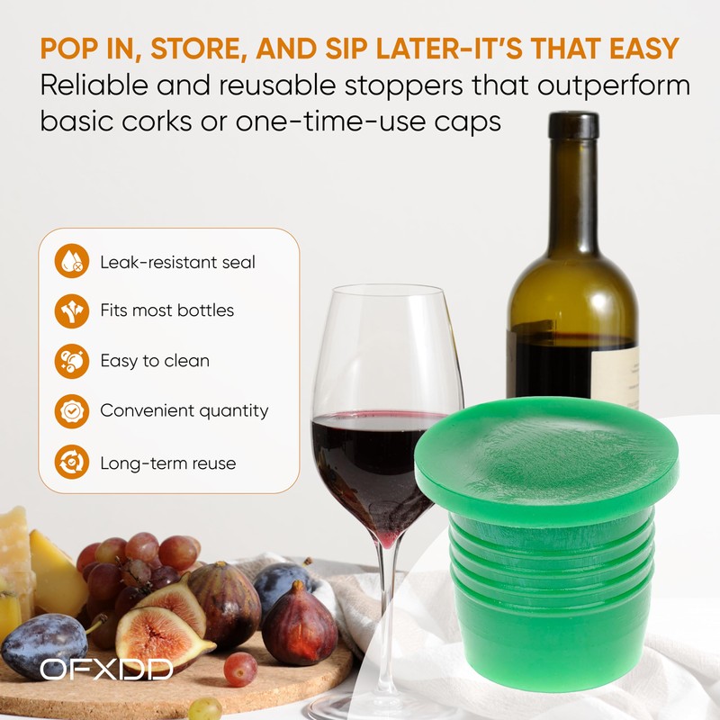 - This wine stoppers rustic is great for liquors, spirits, wines, coffee syrups, sodas, sparkling waters, cooking oils, vinegars, and more. The wine tasting corks are perfect for sealing wine, soda, oil and vinegar bottles. The wine stopper plastic will help to create an airtight condition that preserves wine once the bottle has been opened, keep the wine fresh and tasty for a few days.