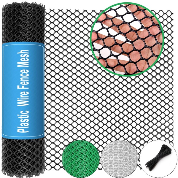 Black Plastic Wire Mesh Fence 15.7IN x 10FT Roll - Ideal for Poultry, Dogs, Rabbit, Snake Barrier & Gardening - Durable Plastic Chicken Wire Mesh - Versatile Plastic Fencing & Netting Solution Upgraded 15.7IN x 33FT ABS Plastic Chicken Wire Fence Mesh, Poultry Fencing, Hexagonal Fencing Wire for Gardening, Construction Barrier Netting, Chicken Wire Frame Crafts, Floral Netting Heavy Duty Plastic Chicken Wire Fence Mesh(Black 16INx10FT) Thickness:0.12",Hole:0.7",for Garden Net, Poultry Fencing, Chicken Wire Frame,Animal Cage Fence,Floral Netting ,Safety Protection Upgraded 15.7IN x 10FT Black Plastic Chicken Wire Fence Mesh,Hole:0.3", Hexagonal Fencing for Gardening, Poultry Fencing, Chicken Wire Frame for Crafts, Floral Netting Upgraded Plastic Chicken Wire Fence Mesh - 15.7IN x 20FT- Black/Green/White Colors - Hexagonal Fencing for Gardening - Poultry Netting, Floral Netting, Plastic Chicken Wire Mesh Roll (Black)
