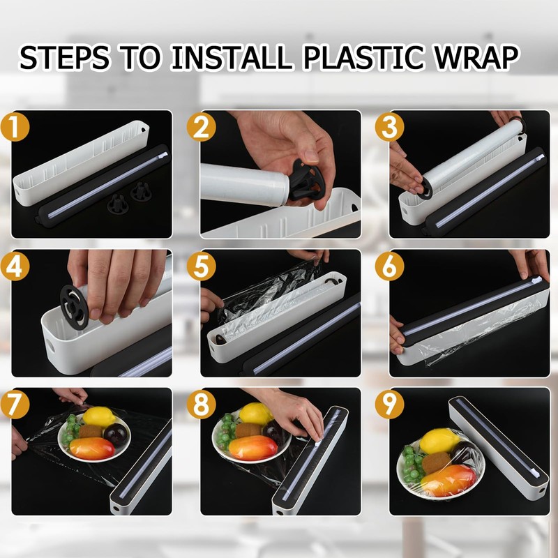 • 【Convenient and safe】This plastic wrap cutter has a built-in sliding cutter that can perfectly cut the plastic wrap. Press and gently slide the plastic wrap to cut neatly, avoiding the difficulty and waste caused by manually tearing the plastic wrap. It can cut plastic wrap faster and more conveniently, and the hidden blade of the safety design prevents you from getting hurt while using it.