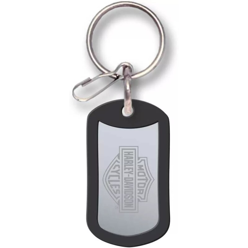 In a quick salute to the military, we offer the H-D® Bar & Shield® Dog Tag Key Chain. The smooth metal badge, framed by a durable rubber perimeter, displays an embossed Bar & Shield® logo. Instantly recognizable as reminiscent of a soldier's ID, this tag delivers civilian functions, keeping your keys on hand or making a zipper pull more efficient.