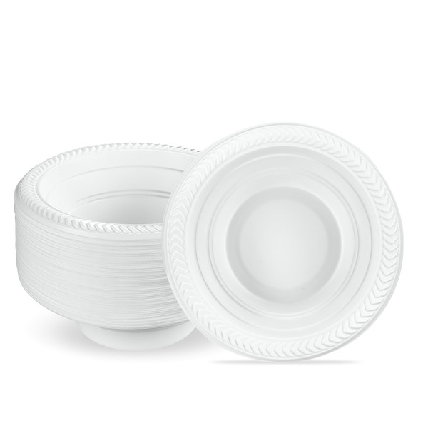 - White plastic 12 oz disposable soup bowls pack of 100 for your home, office, dinners, parties, birthdays, wedding, anniversary, corporate events, and more.