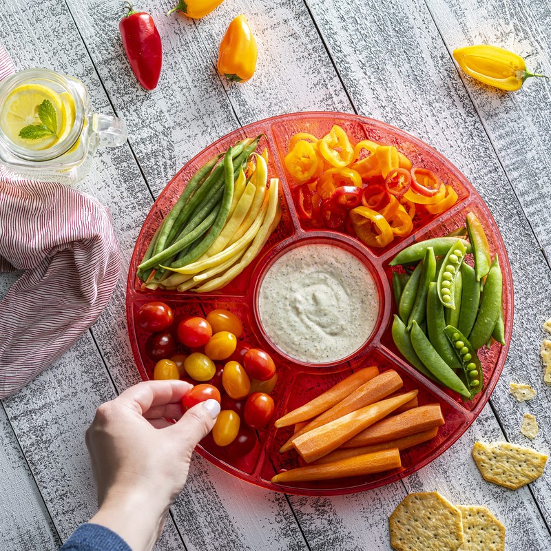 - USE: Plasticpro 6 Sectional Part Platter is Great for Use for Cut up Veggies, Nut Platter, Candy Platter, Veggy's & Sauce in the Center Weddings, Family gatherings, Holidays, Birthday Party's & for Every Event