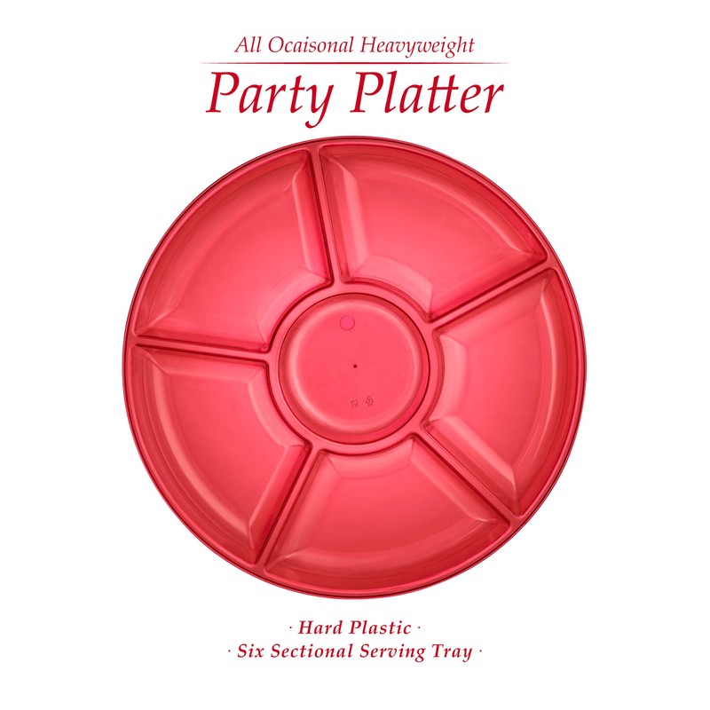 Plasticpro 6 Sectional Round Plastic Serving Tray/Platter (8, Red)
