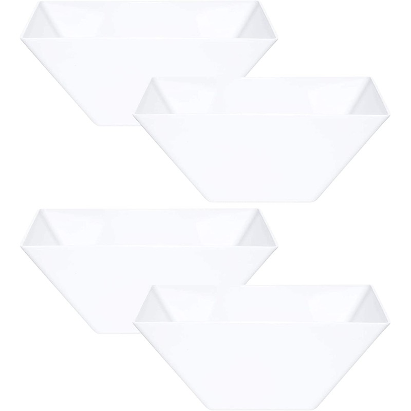 - Set of 4 Disposable Small Square White Plastic Party, Sald, Snack, Serving Bowls,