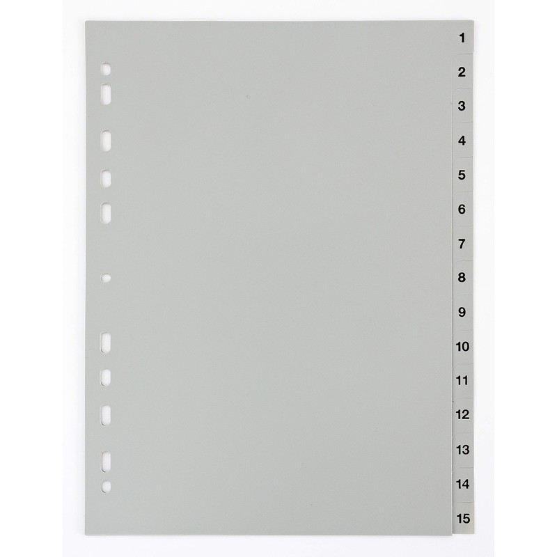 Plastoreg 5er Set 15-teiliges Register/Trennblätter aus PP, DIN A4 mit Zahlen 1-15, volldeckend + praktischem Deckblatt aus stabilem Papier zum Beschriften. Trenn-Blätter für die Ordner-Organisation im Büro