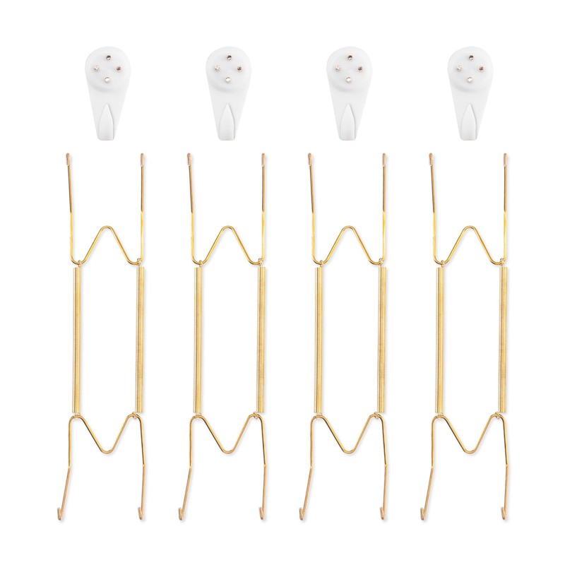 - Premium Material: Our wall plate hangers are made of stainless steel with golden plated on the surface, not easy to break or rust. The rubber tip protector protects your plate from scratches. The adjustable spring design holds the plate tightly