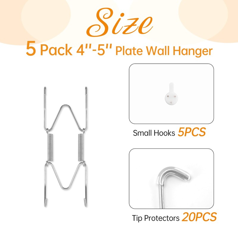 Plate Hangers for Wall for 4-5 inch, 5 Pack, Silver