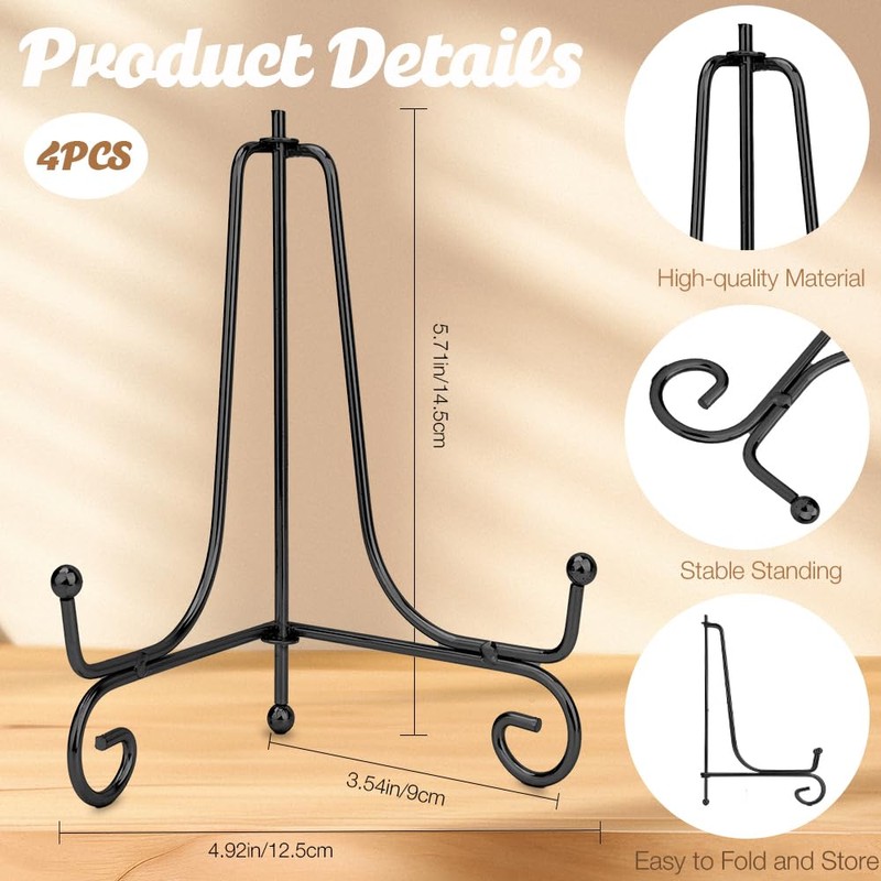 Plate Stands for Display, 4 Pack Iron Display Stand, 6 Inch Black Mini Easel ...