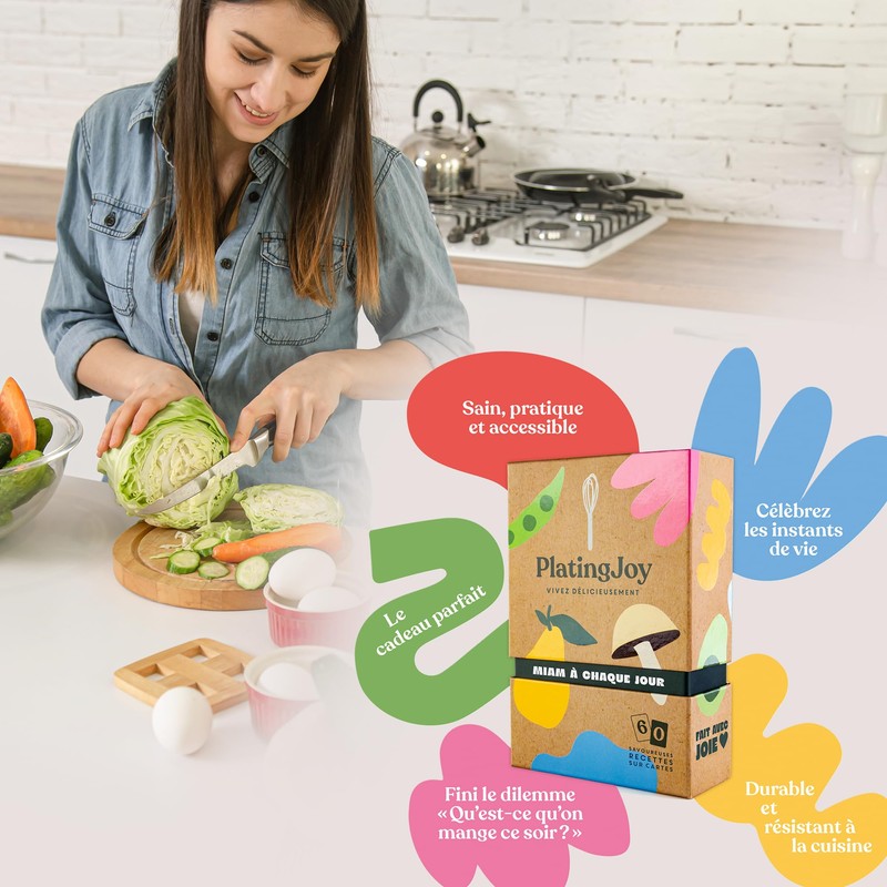 PlatingJoy Recipe Cards in French 4x6 Double-Sided with Box – with 60 Food Ideas - 8 Categories for Cooking at Home with Illustrative Photos - Mother's Day & Birthday Gift for cooking lovers