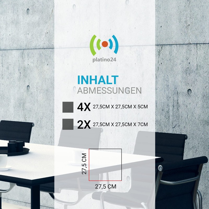 platino24 Sound Absorber Colour from Basotec G+, 3D Acoustic Panels with Acoustic Felt, 6 Square Panels in Granite Grey, Acoustic Panels for Sound Insulation in Office, Studio and Home