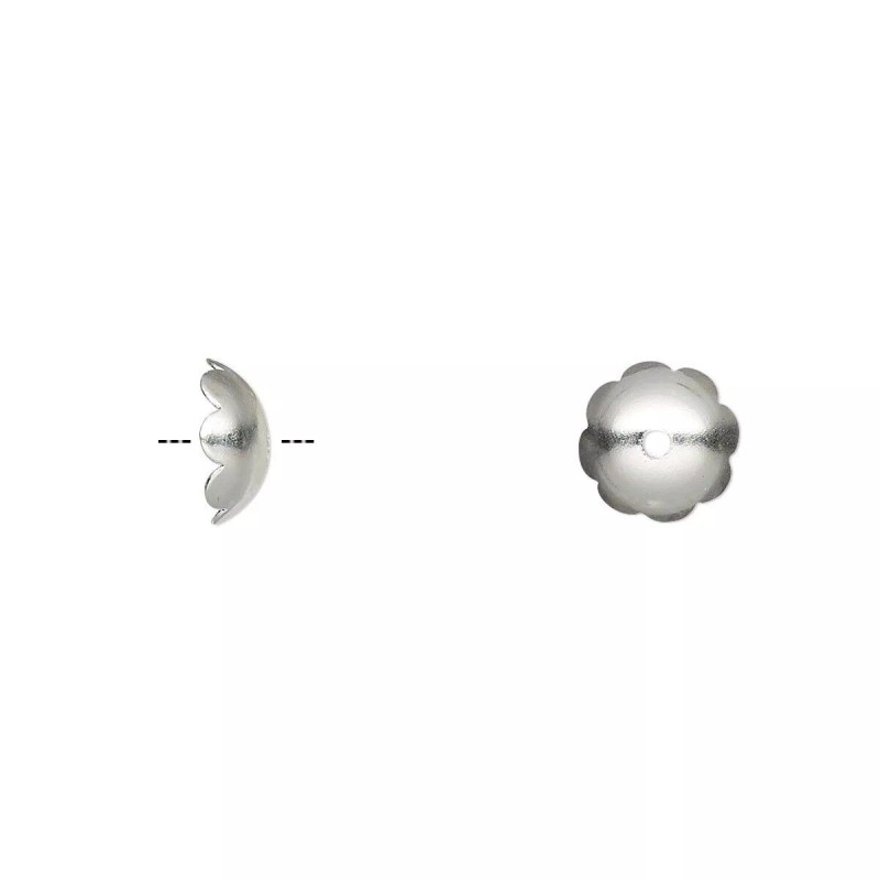 • Silver-plated brass, 8x3mm scalloped round, fits 8-10mm bead.