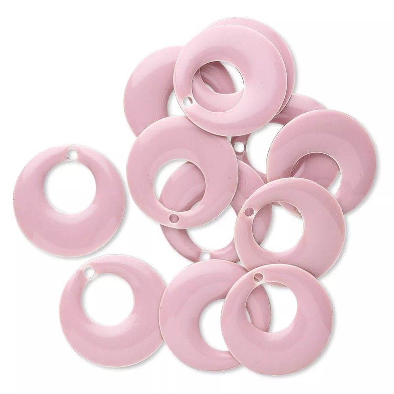 Platinum Drop, 12 Silver Plated & Dark Rose Enamel 17mm Round GO GO Charms *