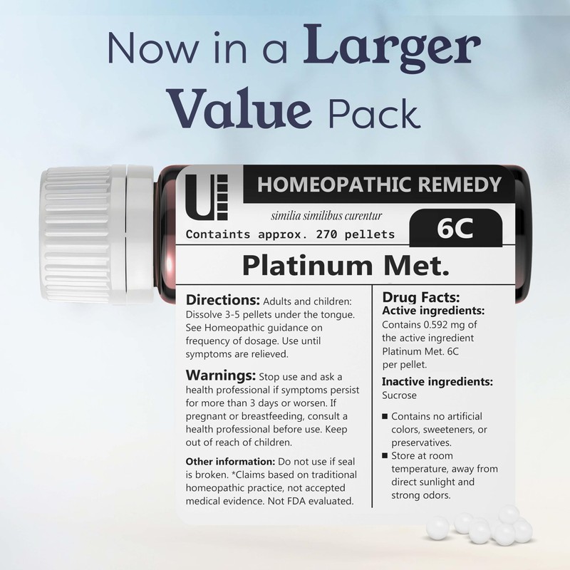 Platinum Metallicum 6C Homeopathic Remedy, 270 Pellets