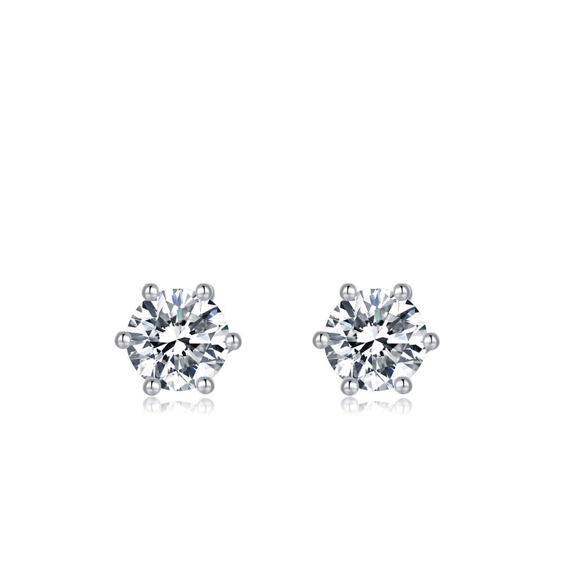 Platinum Plated Sterling Silver Solitaire Moissanite Stud Earrings (5 MM Round, 1 CT TWT DEW, CERTIFIED)