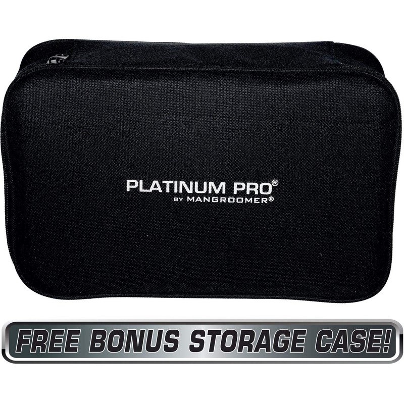 - Features an Extreme Reach Extendable Ergonomic Rubberized Handle locks into place at any length for men of all shapes and sizes with the new PRO XL Extension Lock Button. Plus, an Exclusive Bonus Storage Case is included and only available with the PLATINUM PRO by MANGROOMER!