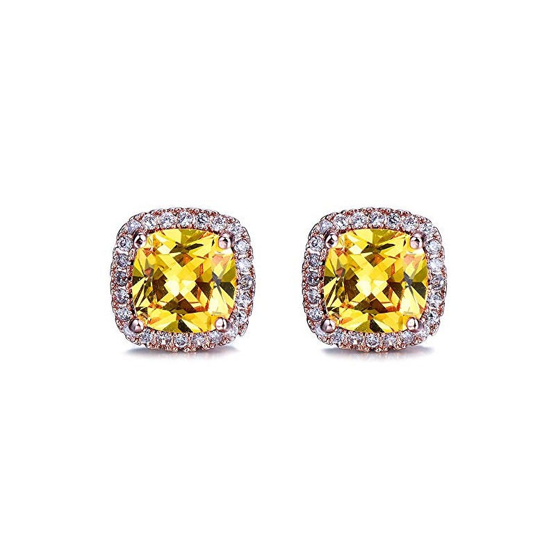 Platinum Rose Gold Plated Cluster Style Simulated Cubic Zircon Fire Opal Stud Earrings (Rose Gold Yellow)