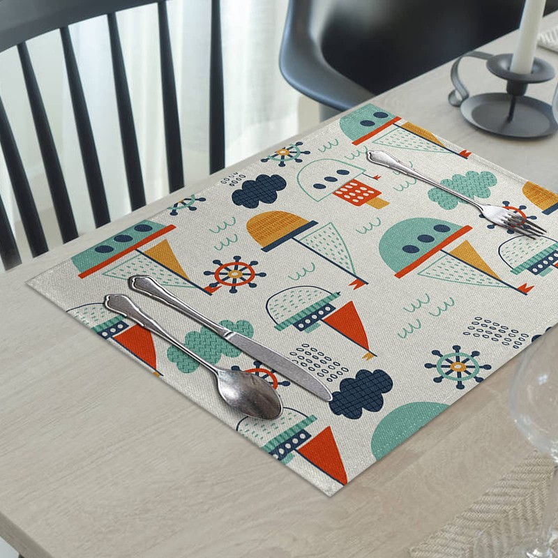 Platzset Kinder 30X40, Tiere Tischset Abwaschbar 4er Set Seedampfer Baumwolle Leinen Platzdeckchen für Esstisch Party Dekoration