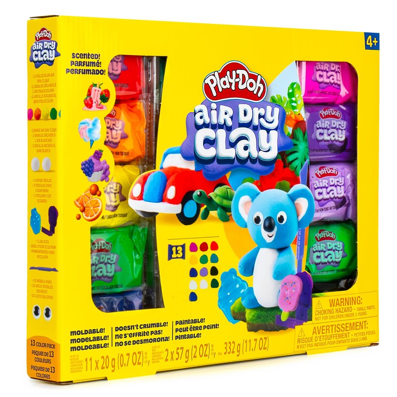 - 13 RAINBOW CLAYS: Feel the fun of your imagination with a colorful assortment of air-dry clay and even sweet-smelling varieties, like pink strawberry, purple grape, orange citrus, and teal cotton candy!