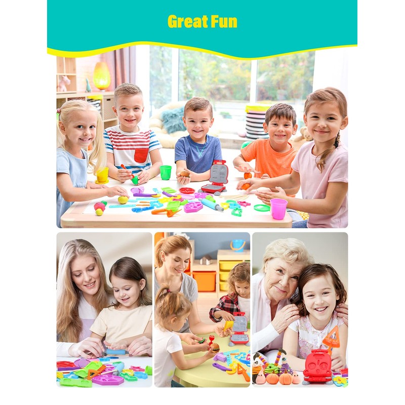 - 🌈🌈Multifunctional Educational Dough Toys: By cutting, rolling, pressing, and molding dough, let kids practice hand-eye coordination, enrich their imagination and creativity, and also cultivate open-minded thinking while playing. There are many kinds of molds, which can extend the time of playing dough games, so that can effectively reduce the time of electronic screens and protect children's eyes.