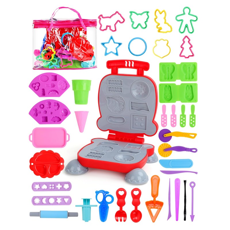 - 🌼🌼Play Dough Accessories Set: This 40-piece dough tool for kids includes cookie cutters, rolling pins, pizza cutters, and more. There's even a burger maker and various creative molds for kitchen ideas. Tools vary in shape and variety. Kids can use these tools to create many Playdough creations and enjoy hours of play, such as children's kitchen role-play. NOTE: Dough & Clay is not included.
