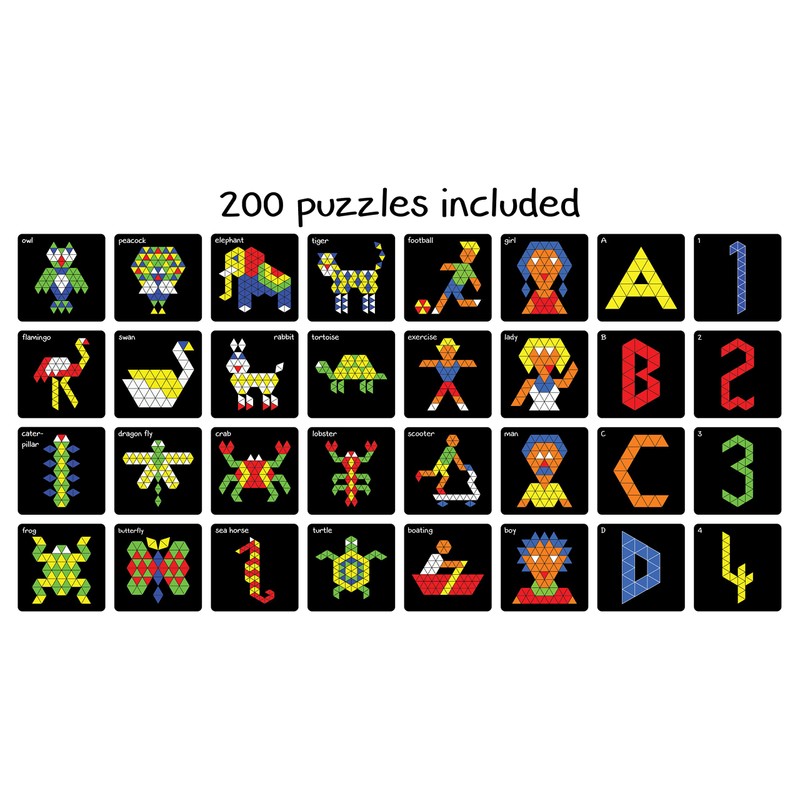 - Kids can let their imagination go wild, by arranging 400 triangle magnets on the magnetic canvas. They can make make fruits, animals, birds, vehicles and more.