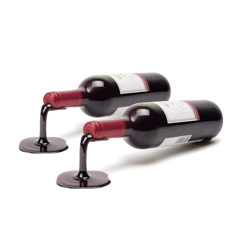 PLAYABLE ART Soporte para botellas de vino derramadas, forma divertida y única de mostrar tu vino favorito, rojo (juego de 2)
