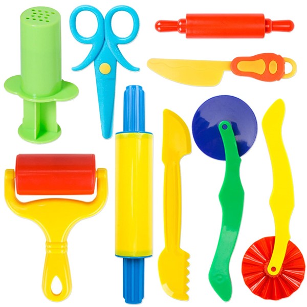 - Great Starter Set: This play dough tool kit is so versatile and functional that it is a must-have for any young playdough explorer! This 9-piece toolkit gives your child the opportunity to cut, slice, roll, press and shape to his/her heart’s content!