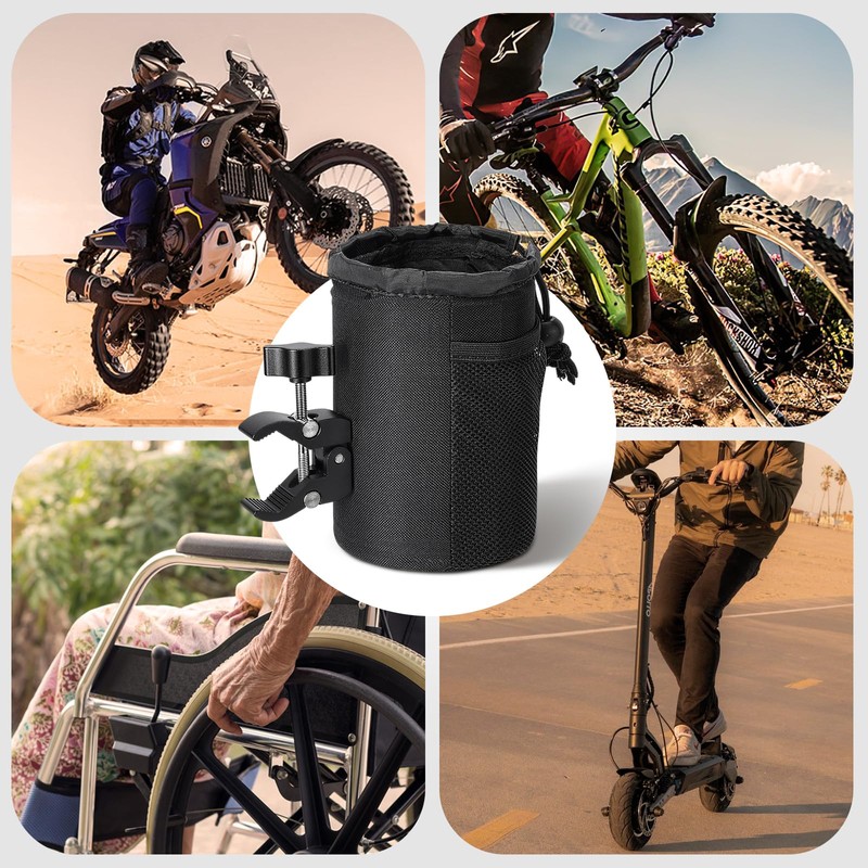 - 【Maximum Weight Capacity 24 oz】Drink holder is 6.4 inches tall by 4.1 inches wide with a drawstring and can hold most cups and water bottles from 12-32 ounces. Maximum cup capacity is up to 24 ounces, please note that the bottom diameter of the scooter cup holder is 3.4 inches
