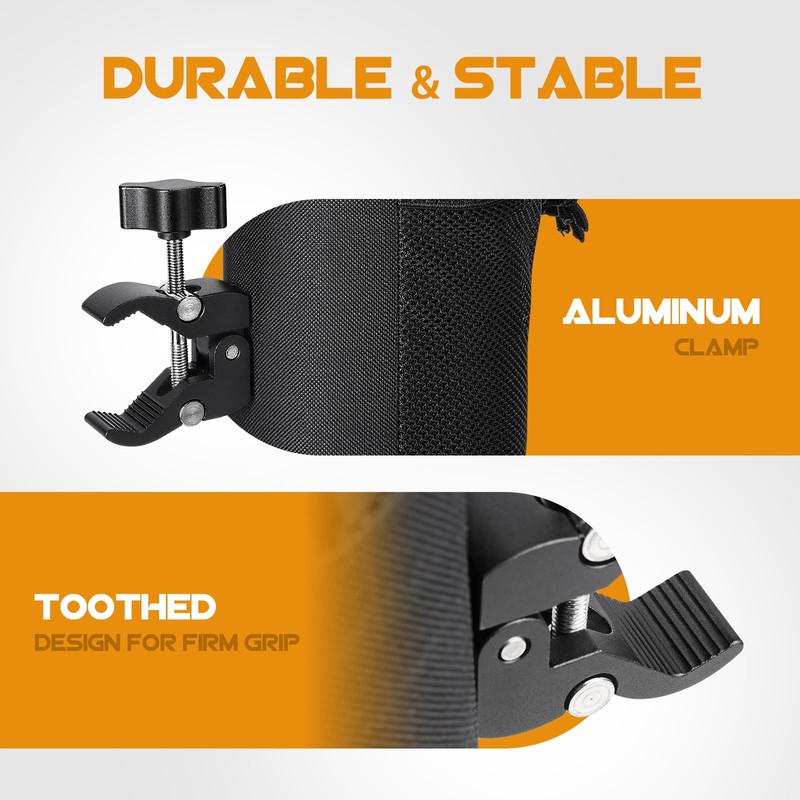 - 【Adjustable Clamp】Motorcycle cup holder uses 90° adjustable clamp, which is more sturdy, better load bearing and won't loosen or rotate easily. Get rid of the trouble of falling off, loosening and rotating when clamping large-capacity water bottles during high-speed riding