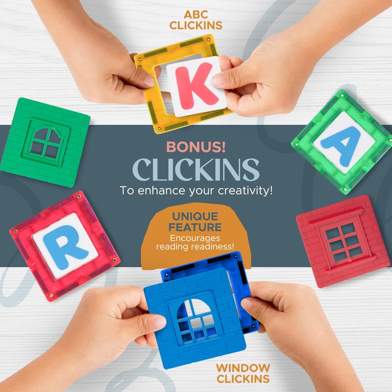 - STRONGER, SMARTER MAGNETIC BLOCKS: Includes 132 Magnetic tiles with Exclusive SUPERMAGS; Strong, Durable Magnets are Great for Building Tall 3D Structures Playmags are the only magnets for kids with SUPERMAGS and Clickins to our name! Super strong magnets guarantee super sturdy structures, while alphabet letters click in to windows to inspire extra creativity!