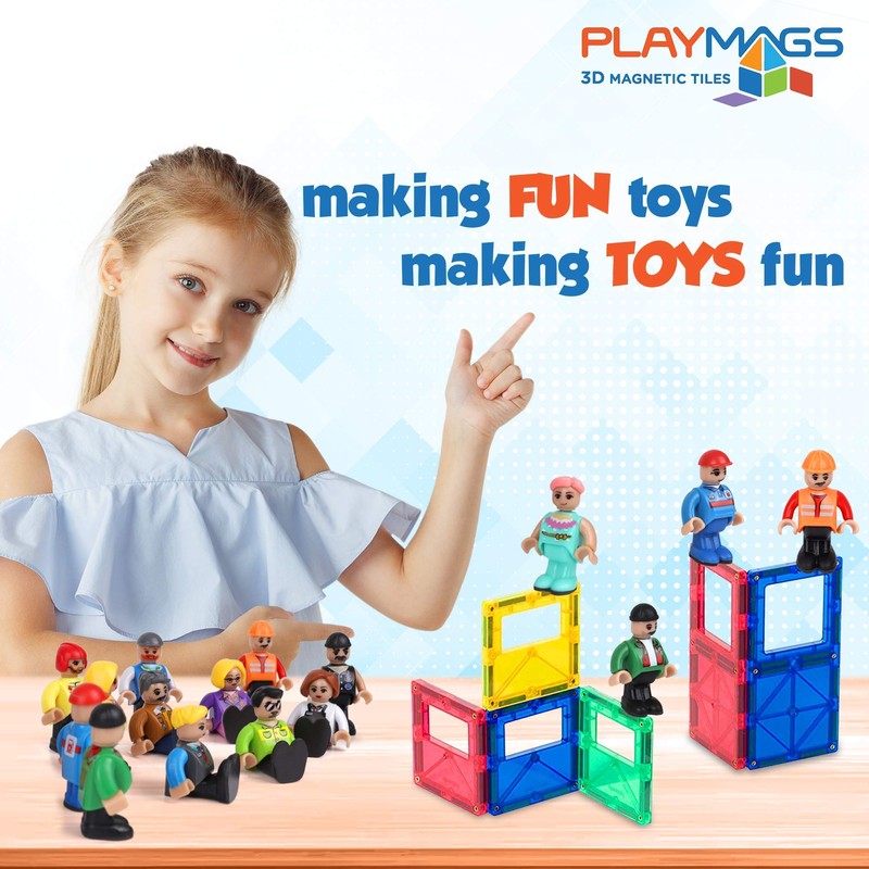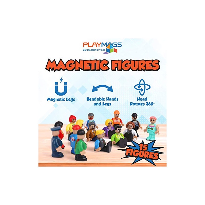 Pick Your Profession. Children love dreaming about their future careers, and these magnetic figures make exploring their future fun and educational! Each set includes multiple life figures and professions, all equipped with magnetic feet to carry them around their magnetic tiles building blocks cities. Figures have moveable body parts and a head that turns 360 degrees as well.