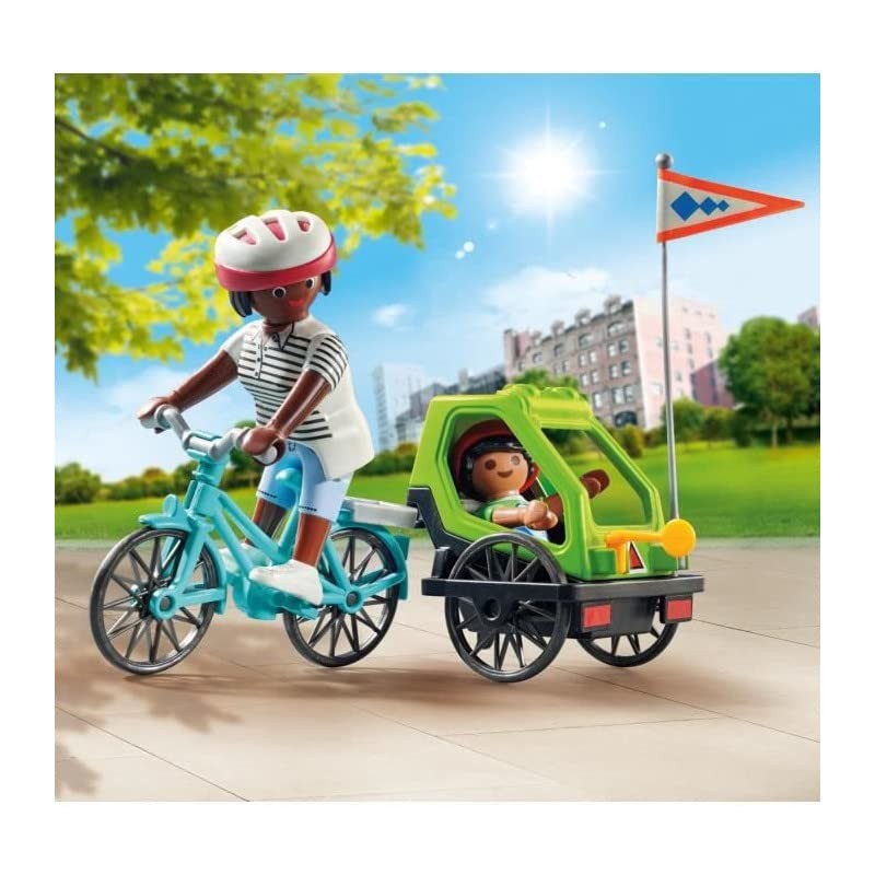 - Part of a collectable range, this Special Plus set features a mother and child getting set for a fun bike trip; There is a one-seater adult bike included as well as a detachable children's trailer; The set is complete with a bike stand, helmet and other accessories;