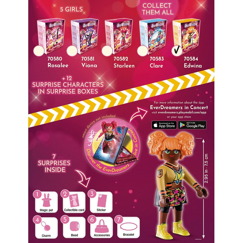 - El juego contiene a la versátil del deporte, Edwina, con tambores y gato, pulsera de silicona, abalorios decorativos, pegatinas, carta y otros fantásticos accesorios.