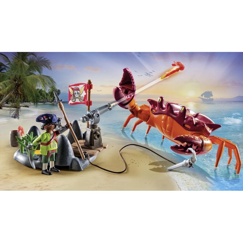 It's eight giant crab legs versus two pirate legs at the Battle of the Giant Crab! Who will win The pirate faces the enormous crab armed with his grappling hook cannon. However, the crab quickly grabs the pirate with its mighty claw and tosses him into the sea. With imaginative characters, fantastic features, and creepy monsters, the Pirates play world from PLAYMOBIL invites exciting role-playing adventures. An ideal gift for pirate fans aged four and up. Combine with other PLAYMOBIL Pirate sets (#71418-71421 – sold separately) for even more fun. Set includes two figures, cannon, flag, barrel, and other accessories. Recommended for ages four to ten years. Warning. Choking Hazard. Small parts. Not for children under 3 years.