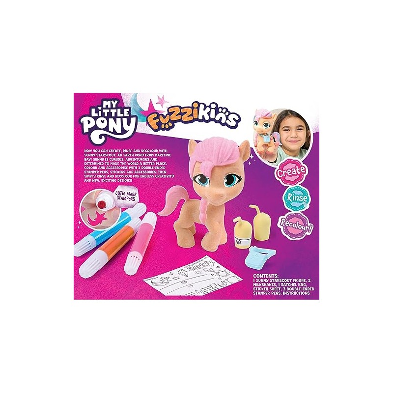 - Each set comes with a flocked My Little Pony Character and accessories