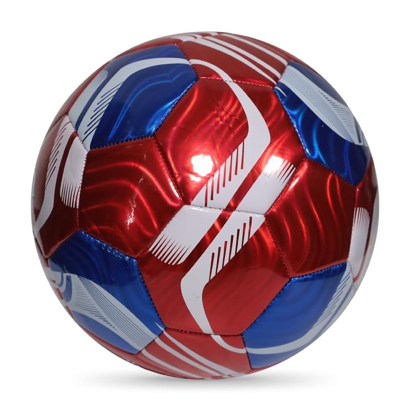 This Globe Striker Soccer Ball with Winding Bladder is uniquely designed to celebrate the passion and spirit of individual countries around the world. Unleash your national pride and elevate your soccer experience with this extraordinary ball that encapsulates the essence of your nation's love for the game. Each Globe Striker Soccer Ball is crafted with meticulous attention to detail and design inspired by the cultural heritage and symbols of your country. The metallic finish adds a mesmerizing touch, catching the light with every touch. But it's not just about looks - performance is at the heart of this remarkable ball. Machine precision stitching ensures unparalleled durability, making it ready to withstand intense matches on any terrain. The winding bladder, expertly engineered for shape and air retention, guarantees consistent flight and perfect bounce, giving you the confidence to take your skills to new heights. Whether you're playing on the hallowed grass of a stadium, the rough streets of your neighborhood, or even on the beach, the Globe Striker Soccer Ball delivers exceptional responsiveness and control. Its soft touch outer casing provides a comfortable feel while maintaining excellent grip, allowing you to execute precise shots and passes with ease. Available in sizes for all ages and skill levels, this soccer ball conforms to official regulations, making it suitable for both friendly matches and competitive play. Whether you're an aspiring young talent dreaming of representing your country or a seasoned pro with a burning desire for victory, this ball is tailored to your ambitions. The Globe Striker Soccer Ball captures the heart and soul of your nation's soccer legacy. Embrace the spirit of competition, camaraderie, and national unity with the Laser Metallic Soccer Ball with Winding Bladder, designed exclusively for your country. Write the next chapter of your nation's soccer story and leave an unforgettable mark on the world's most beloved game.
