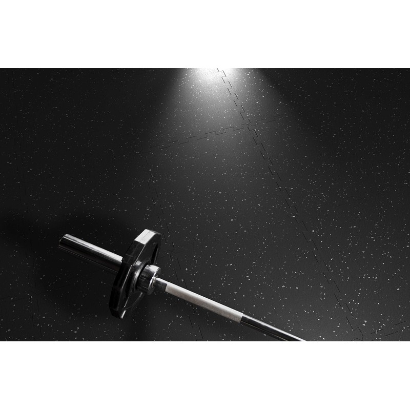 Revered for its seamless installation, practical interlocking design, and sufficient cushioning, the multi-purpose Genaflex Lock Laminated interlocking rubber Tile has become a staple in home gyms flooring, basement workout spaces, and spare bedroom exercise set-ups around the world. Crafted of dent-proof premium recycled rubber and specially designed to absorb impact and minimize floor damage from demanding workouts, such as weightlifting, plyometrics, and other intense exercise regimens while absorbing noise and ground vibration. Durable yet supportive, this special rubber surfacing offers a superior foundation for a variety of exercise programs and is fortified to hold heavy exercise equipment and withstand barbell drops from overhead, ensuring stability and floor protection. Modern engineered design offers stain and water-resistance, protecting against sweat pooling, spilled sports drinks, and any other gym-associated messes while its anti-fatigue properties provide bolstered underfoot comfort to ease compression and impact from demanding workout sessions; perfectly comfortable for lying on after an intense WOD to catch your breath. Advanced laminate coating offers superior traction for vigorous floor exercises, including burpees and plyometrics while minimizing dirt and dust build-up, ensuring a pristine surface for years of lasting use. Ample puzzled edges provide a hassle-free, easy, secure interlocking installment, allowing gym and home owners to precisely fit particular space layouts and purchase exact sq. footage for quick, easy installation (glue down installation not required). Classic fleck coloring delivers that iconic commercial gym look that will transform any space into your own personal home gym. Economic design allows new owners on a budget to tile their entire space with commercial gym quality rubber surfacing without breaking the bank.