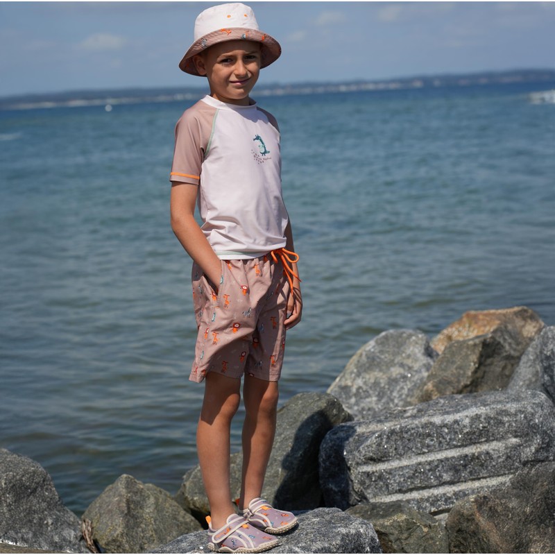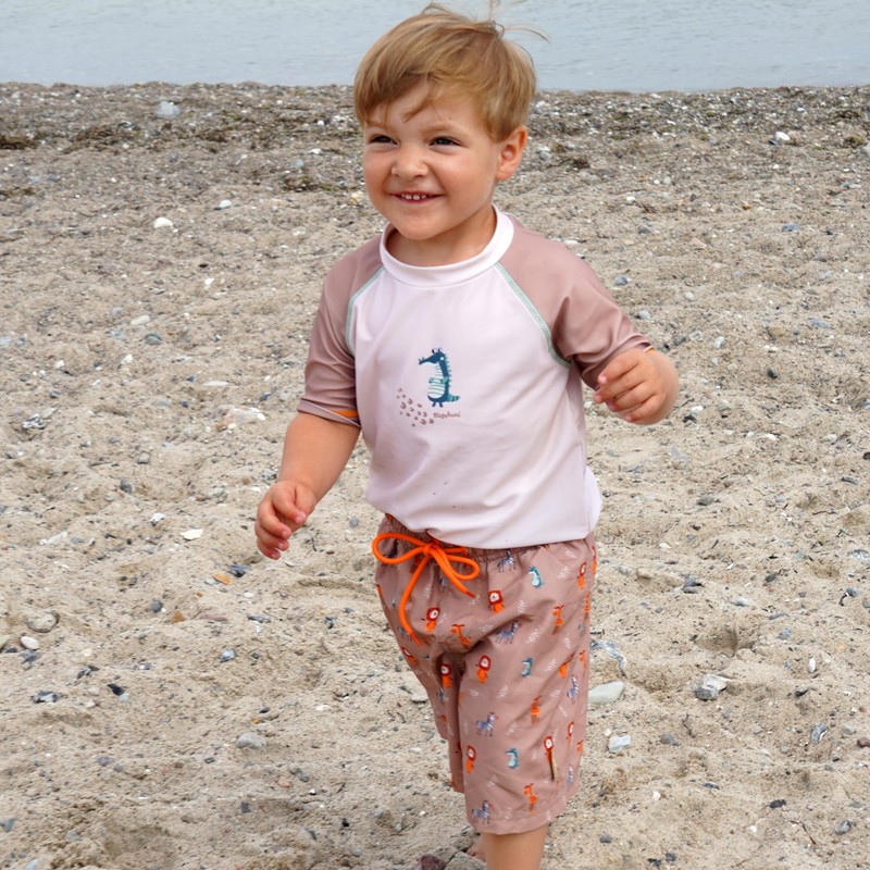 - The UV protection bathing T-shirt has a crew neck and thanks to the flat seams your child is comfortable to wear