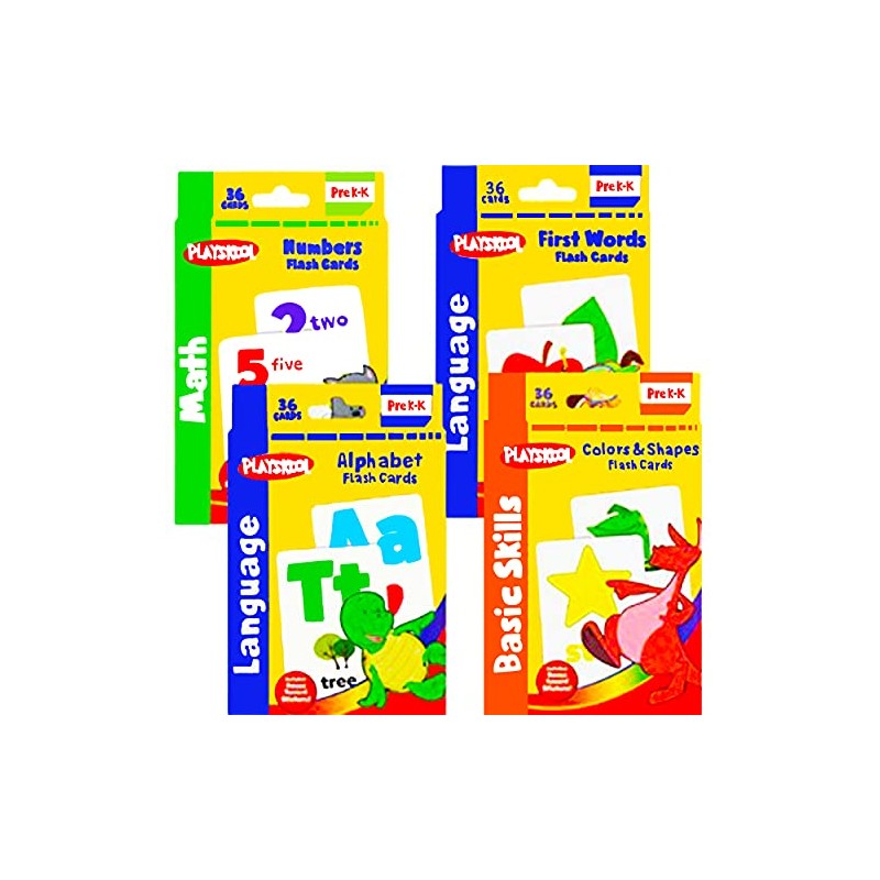 Playskool Flash Cards - 4 Sets of Flash Cards (Alphabet, Numbers, Colors and Shapes, First Words) - Packaging May Vary