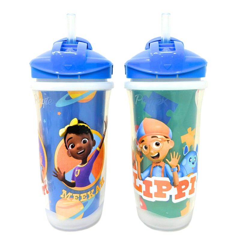 Playtex Baby Stage 3 Blippi™ Straw Cup - Insulated, Spill Proof Straw Sippy Cup - 9oz (12m+) - 2 Count