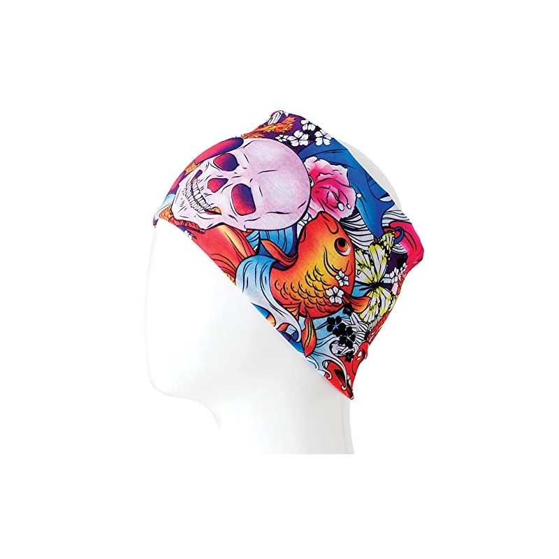 PLB Women's Boho Wide Skull and Koi Fish Design Infinity Headband Face Mask