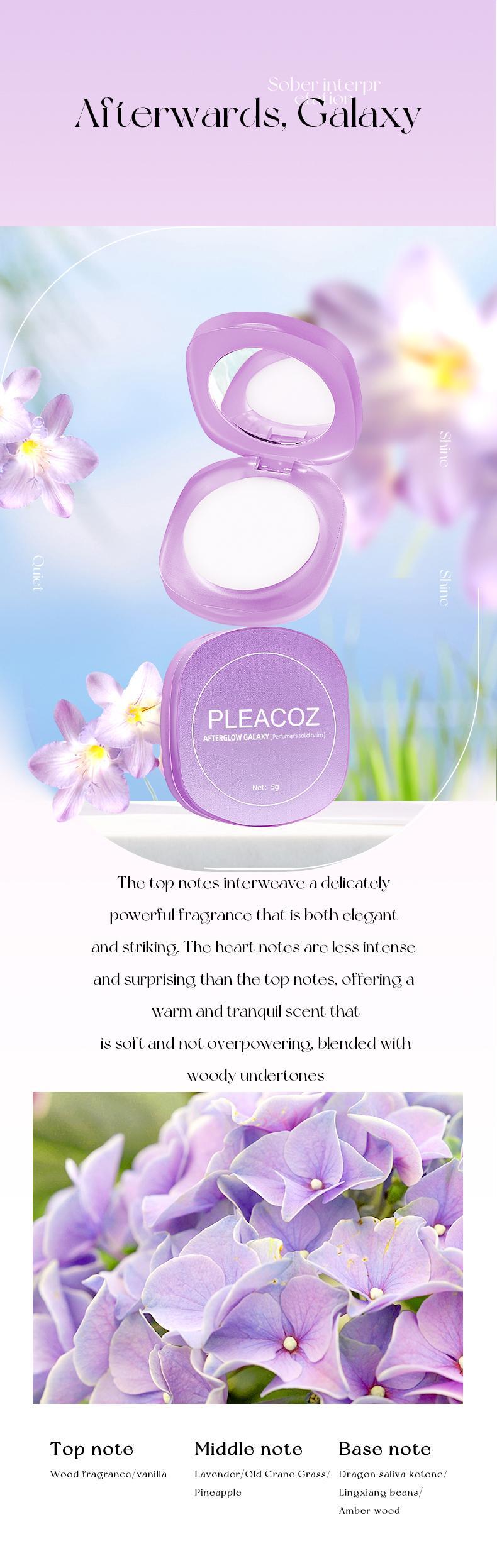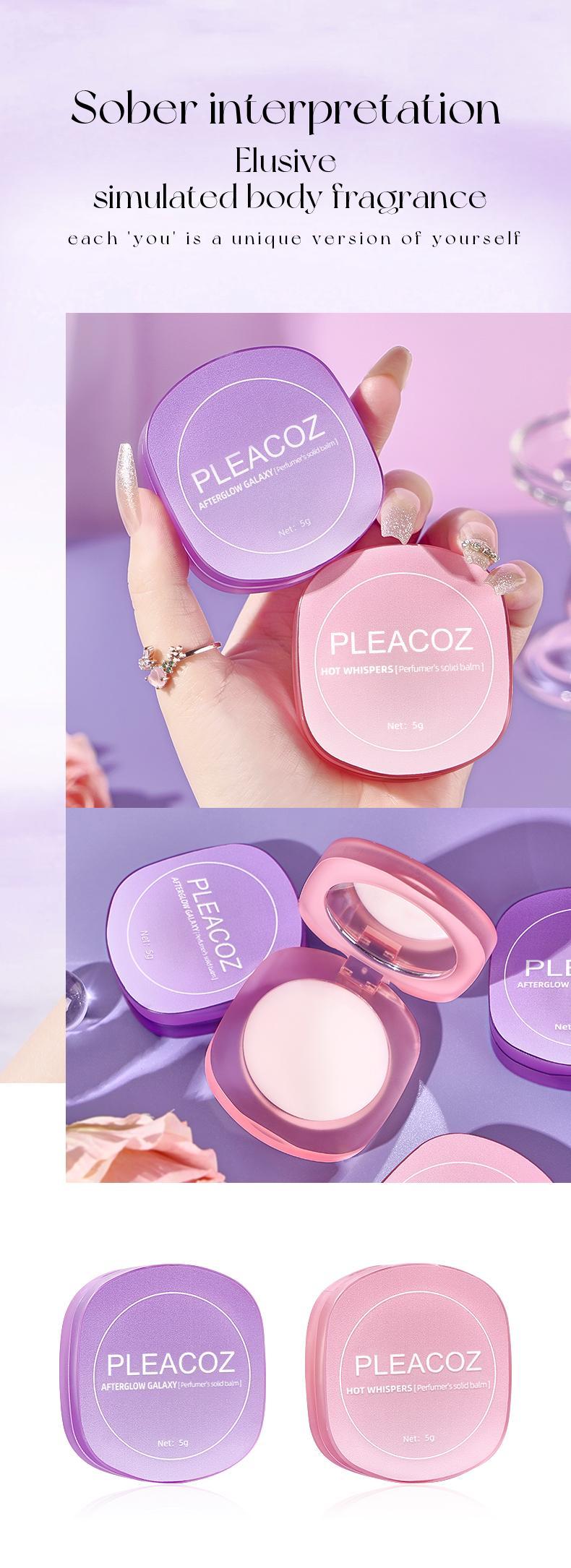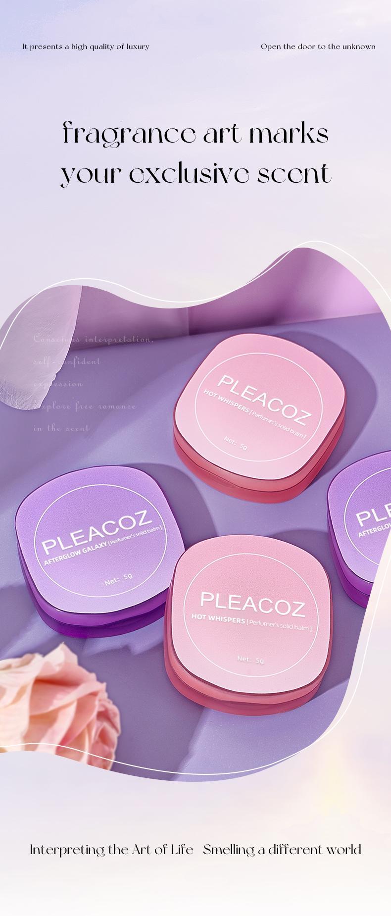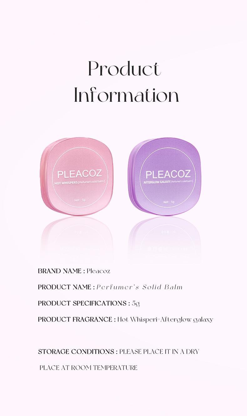 PLEACOZ’s solid perfume balm, crafted from natural waxes and essential oils. This creamy, non-greasy formula glides smoothly onto your skin, leaving it soft and hydrated while harmonizing with your natural scent to create a unique, personalized fragrance.