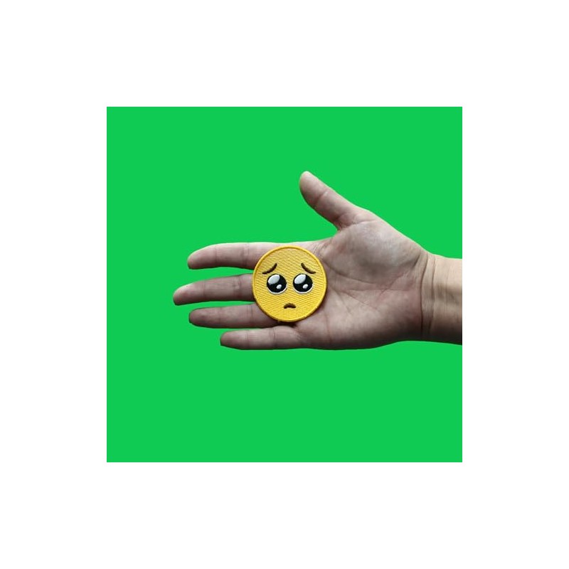 Pleading Face Emoji Patch Begging Hope Embroidered Iron On