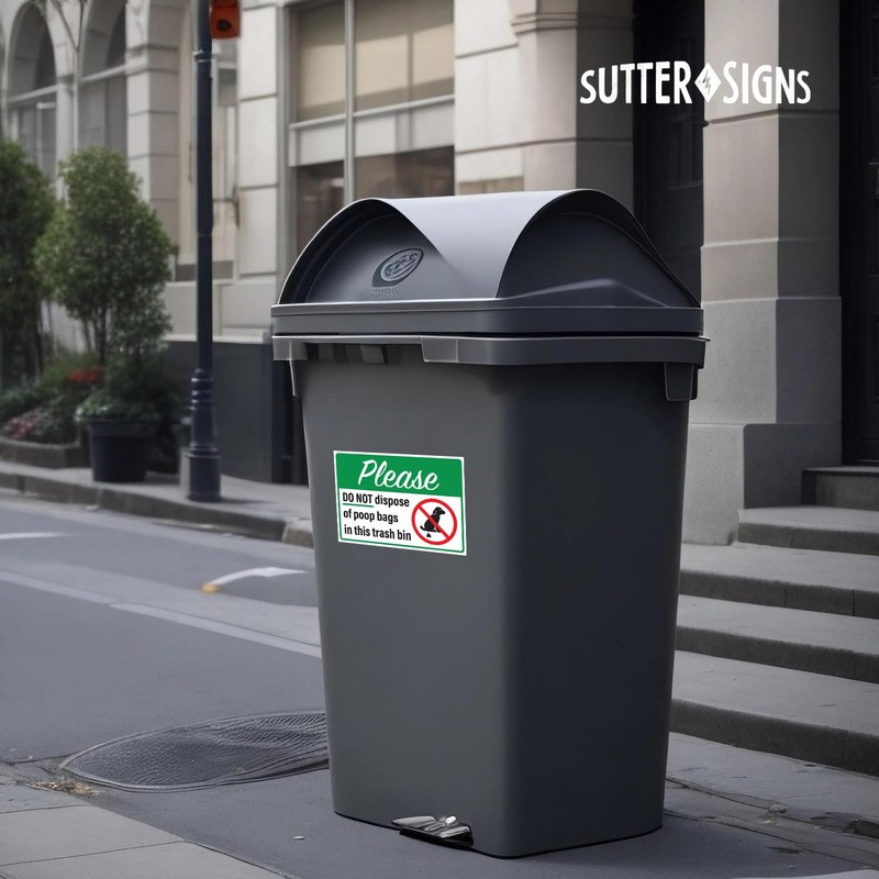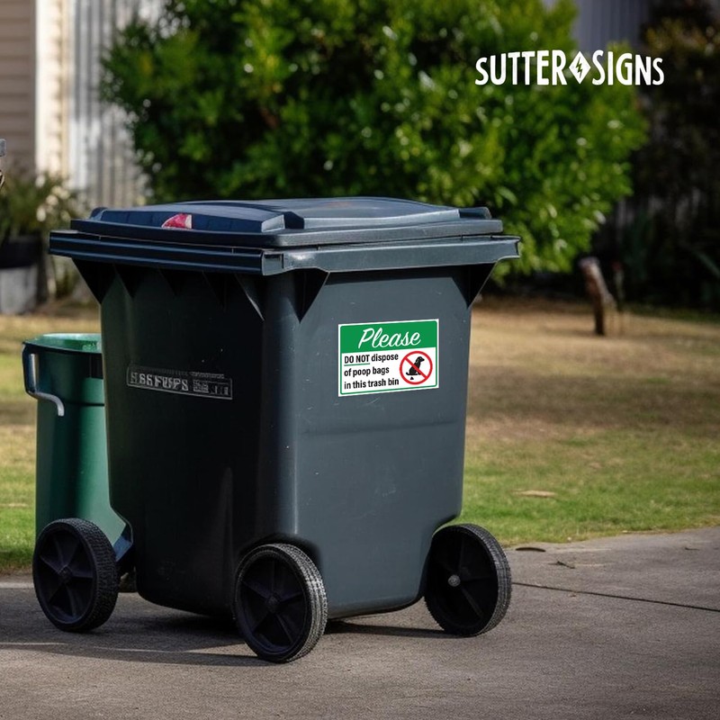 - CLEAR AND ASSERTIVE: Our stickers offer a straightforward, assertive message: "Please do not put poop bags in my trash bin." Perfect for homeowners who want to keep their trash cans free of their neighbor's dog waste bags.