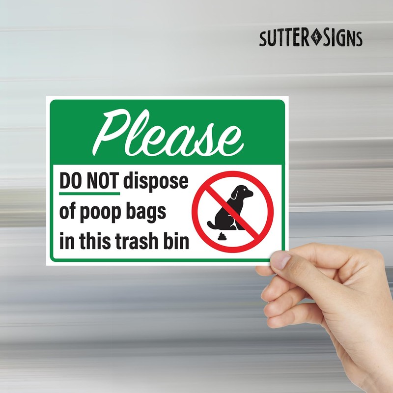 - EASY-TO-READ DESIGN: With bold lettering against a white background, the "do not put dog poop in this trash bin" message is easy to read from a distance, ensuring that the message is seen and respected.