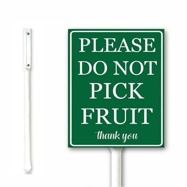 Please Do Not Pick Fruit Aluminum Sign for Garden, Green Yard Sign With Stake for Lawn Yard Farm 8 x 12 Inches Sturdy Rust Free Easy to Install