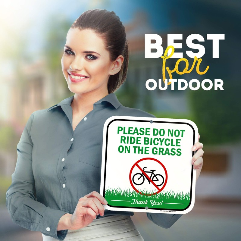 Please Do Not Ride Bicycle On The Grass Sign, 12" x 12" 0.40 Aluminum, Fade Resistance, Indoor/Outdoor Use, USA MADE By My Sign Center