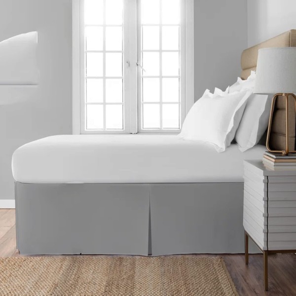 Pleated Bed Skirt with Split Corners-Pleated Dust Ruffle - 21" Tailored Drop Easy Fit,100% Microfiber Soft,Sheen & Luxurious Look - Bed Skirts (Light Grey -Twin)
