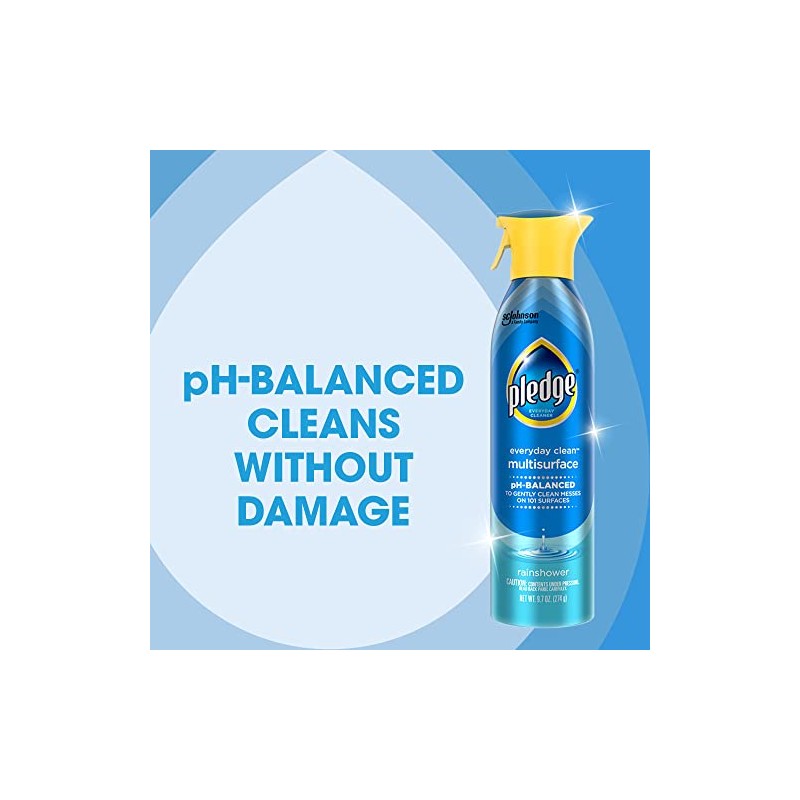 There�s a special sort of satisfaction that comes from using pH-Balance Pledge to bring out the beauty of your home. Pledge Everyday Clean Multisurface Cleaner is pH-Balance and designed for daily cleaning of 101 surfaces. The formula of this whole-home multisurface cleaner is balanced to clean and care for most hard surfaces by removing messes and dust with no damage and no dullness. It also cleans without frustrating streaks or residue�leaving only a beautiful home. It�s great for most hard surfaces: laminate, plastic, sealed granite, sealed marble, sealed quartz, chrome, stainless steel, glass, mirrors, sealed wood, wood laminate, electronics and more*. It�s the pH-Balance between cleaning and caring that cleans without damage. It removes messes, fingerprints, dust, smudges and smears. Use this trigger spray as a countertop cleaner, furniture cleaner, stainless steel cleaner, wood cleaner and as a cleaner for so many other things.* The convenient aerosol spray is fast and easy to use. There�s also a fresh Rainshower scent to enjoy. Bring out the beauty of your home with pH-Balance Pledge Everyday Clean. *Not suitable for unsealed wood, marble or granite. Do not use with other household cleaners.