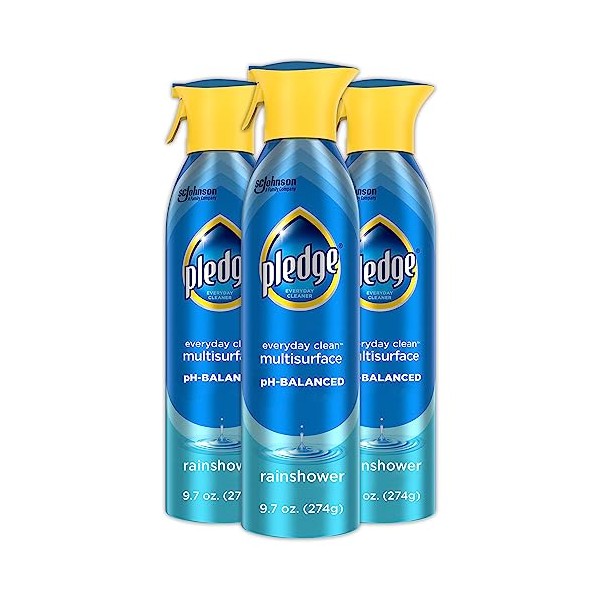 Pledge Pledge Everyday Clean Multi Surface Cleaner Spray, pH Balanced to Clean 101 Surfaces, Rainshower Scent, 9.7 oz (Pack of 3)